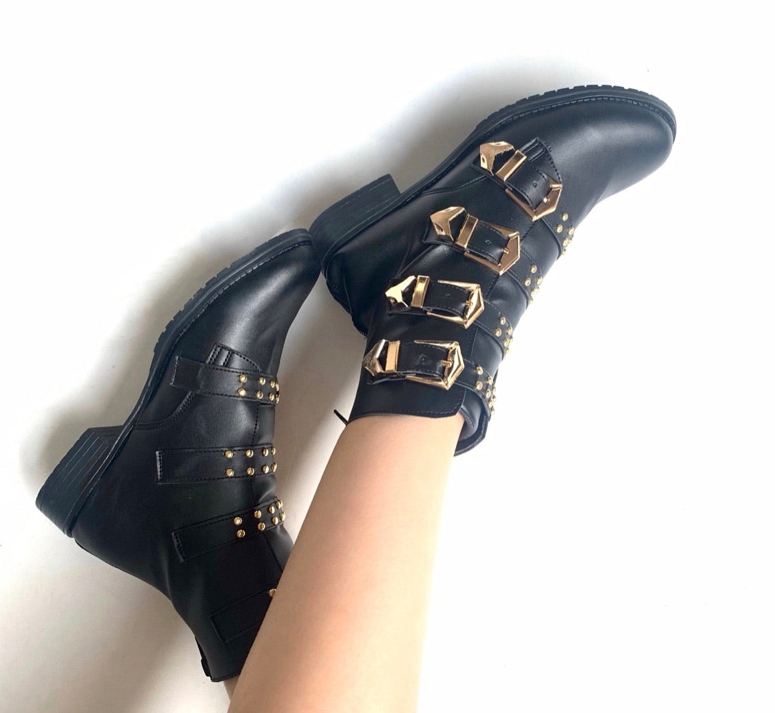 Botín De Imitación Piel, Con Detalles Tipo Remaches Al Frente, Zipper Atras Para Abrocharse.
