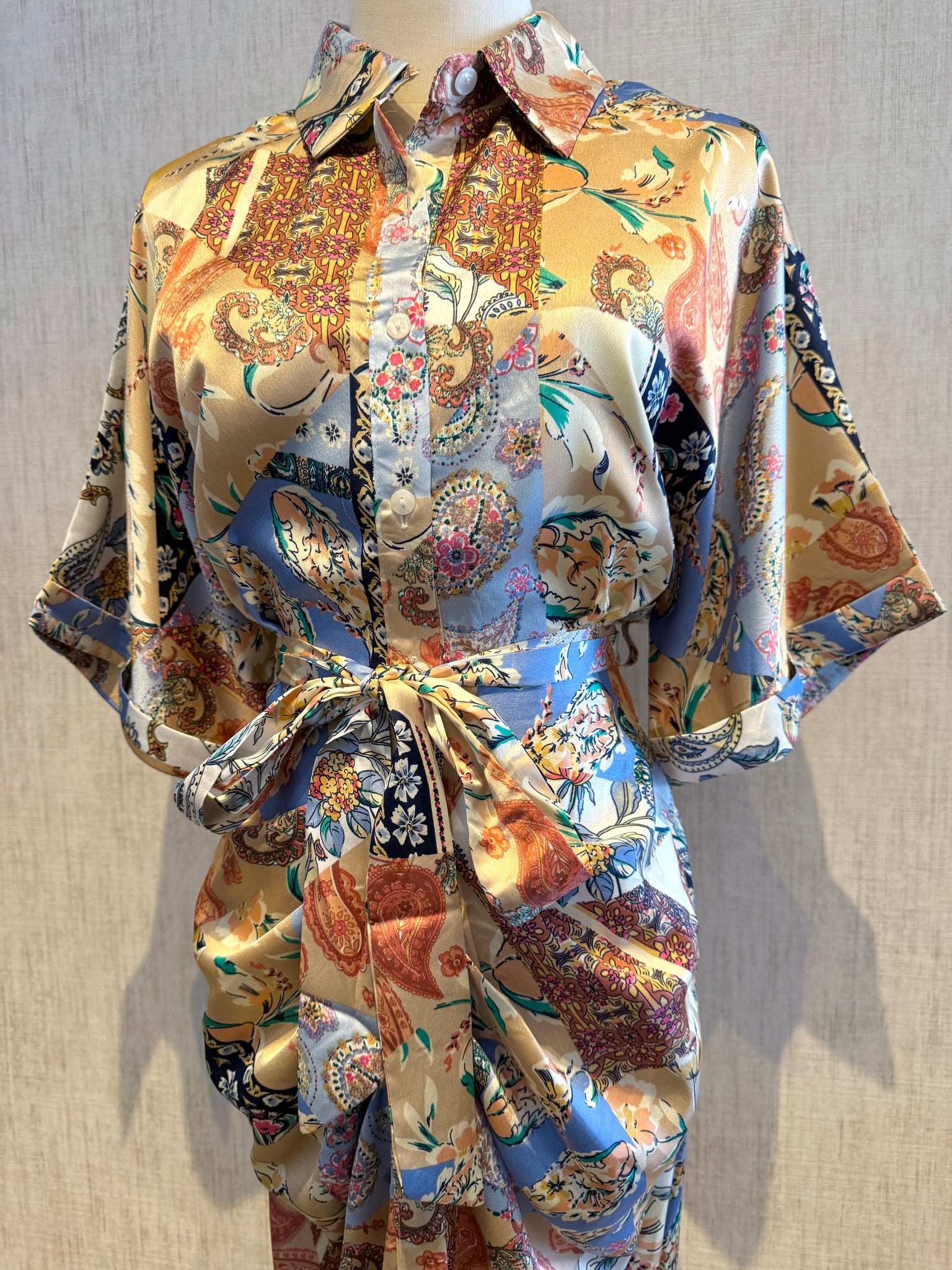 Paisley Belted Button Dress