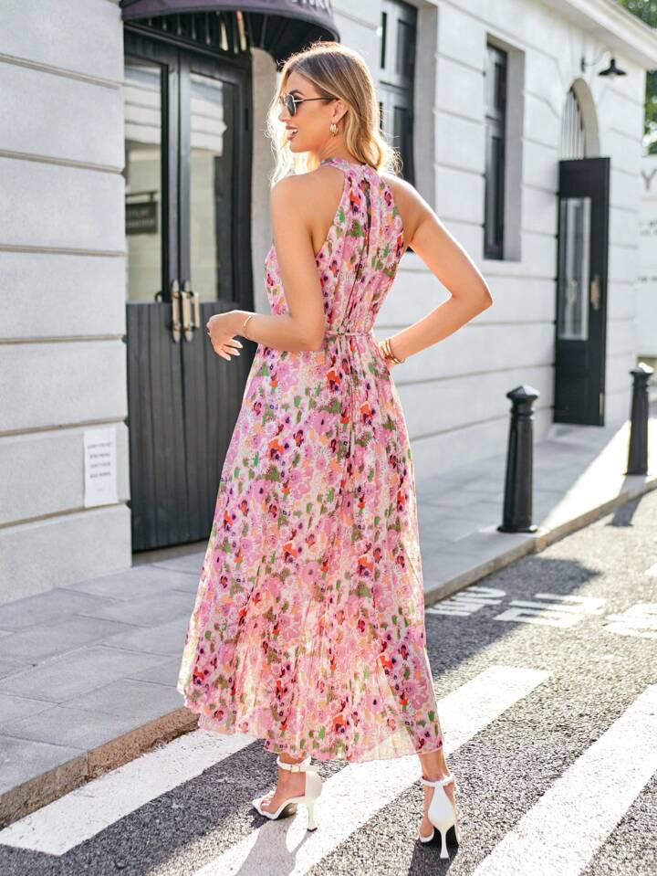 Sleeveless Neck Floral Dress